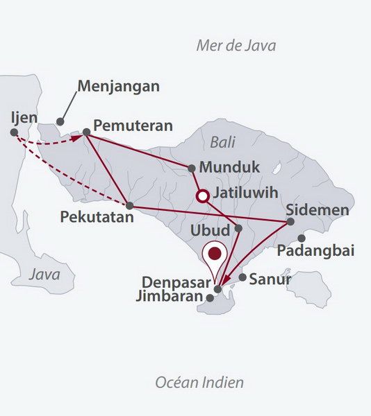 14 jours / 11 nuits Selon programme Une séduisante découverte de Bali au cœur de la nature, avec les sites mythiques mais aussi des régions méconnues, les plages sauvages, des balades et rencontres insolites, vos nuits en demeures de charme, et une incursion à l’extrême Est de Java au volcan Ijen. Un vrai coup de cœur !-