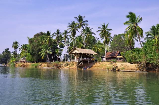 Depuis le lodge, enfourchez vos vélos pour une agréable balade le long du Mékong et à travers Champassak (15 km, 1h30). Vous empruntez de petites routes de terre battue traversant les villages et échangez avec les habitants. Après une halte au Vat Muang Kang, l’un des plus anciens temples actifs de la région et le déjeuner, route pour l’île de Don Khong, au cœur de la région des 4 000 îles. (P.déj+Déj+Dîn)