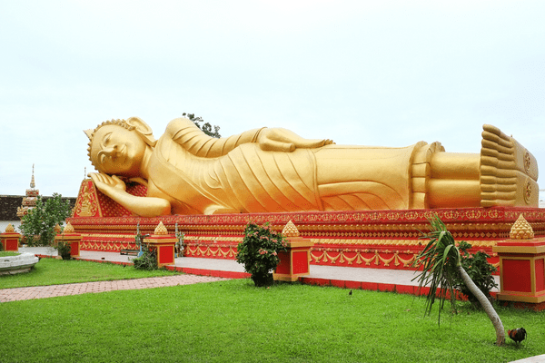 La visite s’achève au That Luang, imposant stupa doré du XVIᵉ siècle, considéré comme le site religieux le plus sacré du Laos et lieu de pèlerinage majeur. Retour dans le centre-ville en fin de visite.