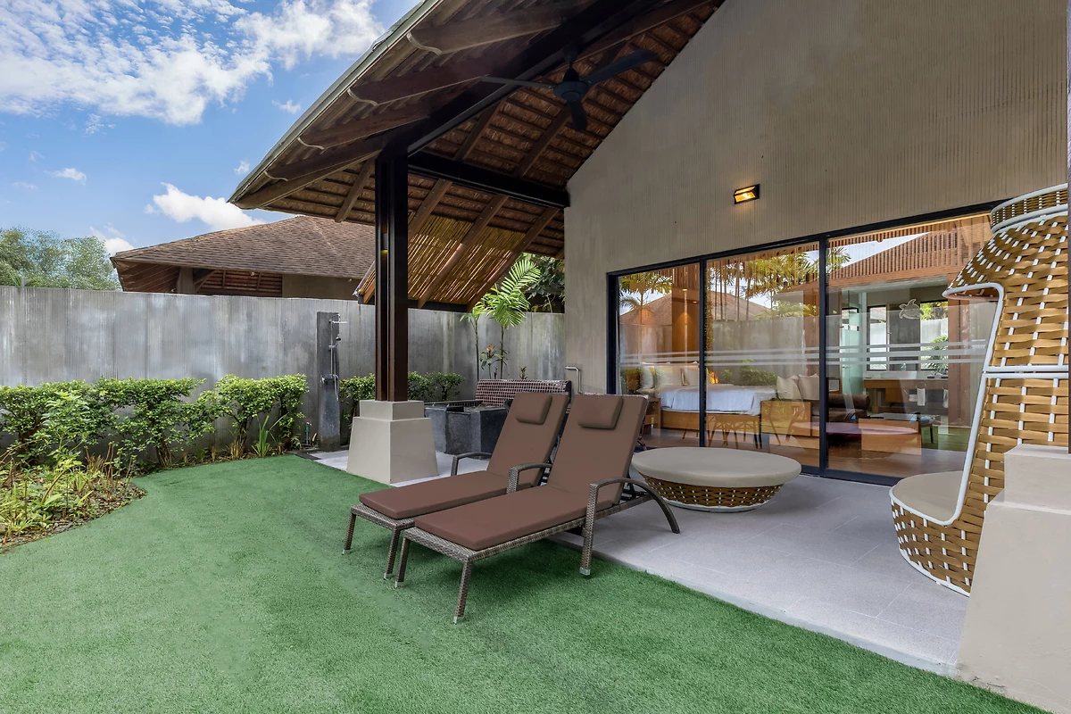 - Villa piscine 1 chambre : Villa de 114 m2 pour 2 personnes disposant en plus de minibar, nécessaire à thé, machine à café et douche intérieure et extérieure, avec une terrasse donnant sur un jardin privatif.
