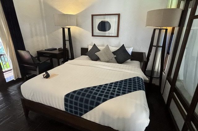 Décor et confort : S’il est bien un hôtel qui est fier de l’art de vivre thaï, c’est bien le Kata Palm qui affiche dès le lobby une décoration largement inspirée par les traditions siamoises : dais avec tentures, bois travaillé aux teintes dorées, palette de couleurs vitaminées. Le tout crée une jolie ambiance à savourer dès l’arrivée. Il en va de même pour les chambres Superior où mobilier en teck, panneaux décoratifs dorés et couleurs chatoyantes créent une atmosphère chaleureuse et reposante. Equipement tout confort, salle d’eau avec douche et balcon. Toutes les chambres sont réparties dans des bâtiments de 3 étages encerclant les piscines.
