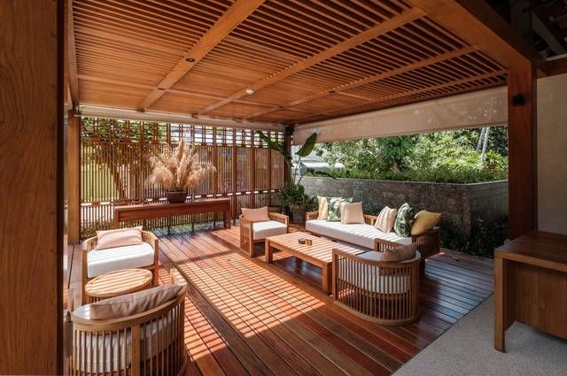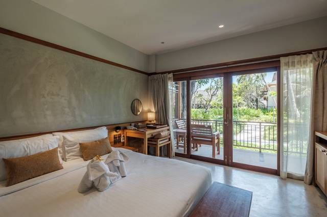 Situées en rez de jardin dans des petits pavillons, les chambres Deluxe Garden sont spacieuses (38 m²) et dotées d’un balcon ou d’une terrasse. Décoration volontairement épurée et tendance qui privilégie les matières naturelles avec coton, bois exotique et béton ciré. L’ensemble, parfaitement intégré au cadre naturel, dégage une atmosphère très reposante.