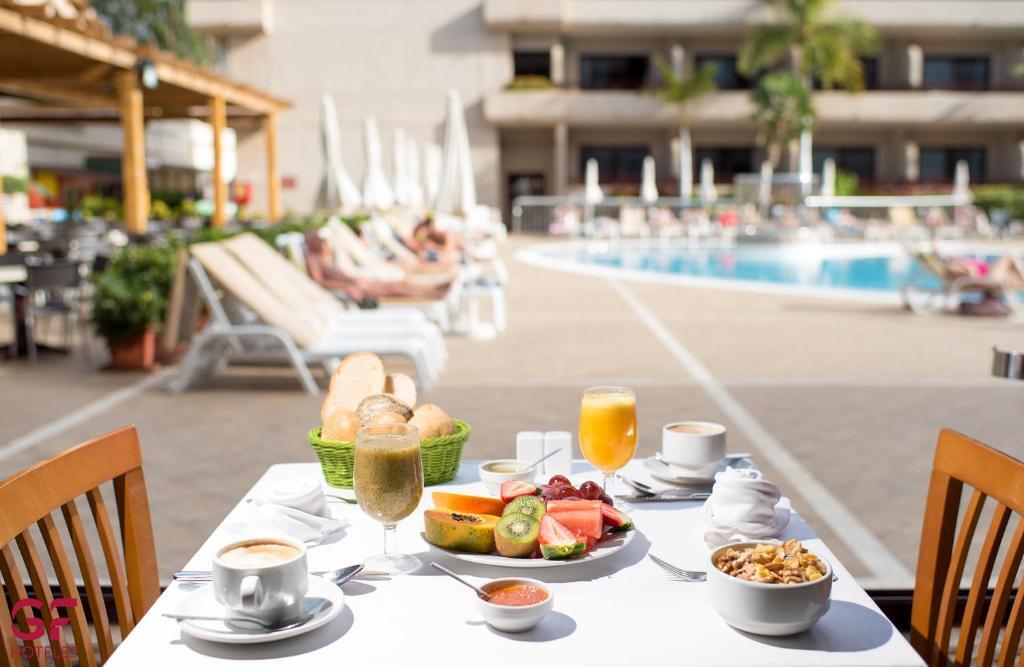 Le restaurant du GF Fañabe propose un buffet varié avec une cuisine ouverte et des dîners à thème réguliers. Le bar informel de la piscine sert des repas légers et des cocktails, tandis que le bar du hall propose de la musique live
