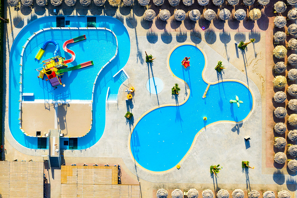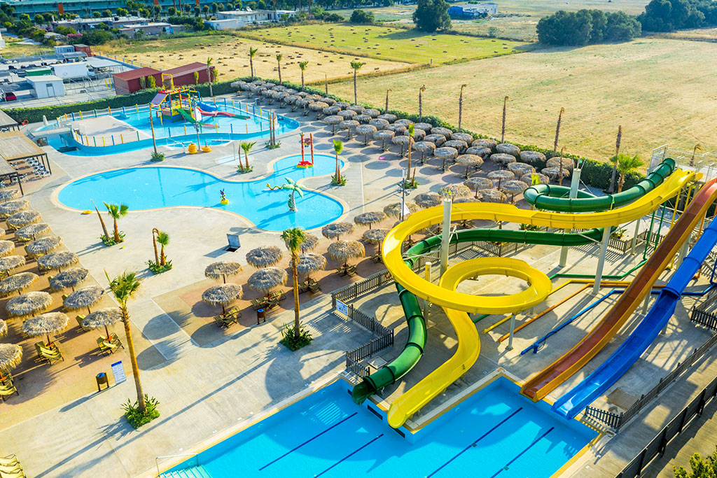 - Parc aquatique (env. 500 m du complexe principal) avec « lazy river », toboggans pour adultes et enfants (Kamikaze, Idrotubo, Idrotubo Mix et Toboga New Line), aqualand, « splash »