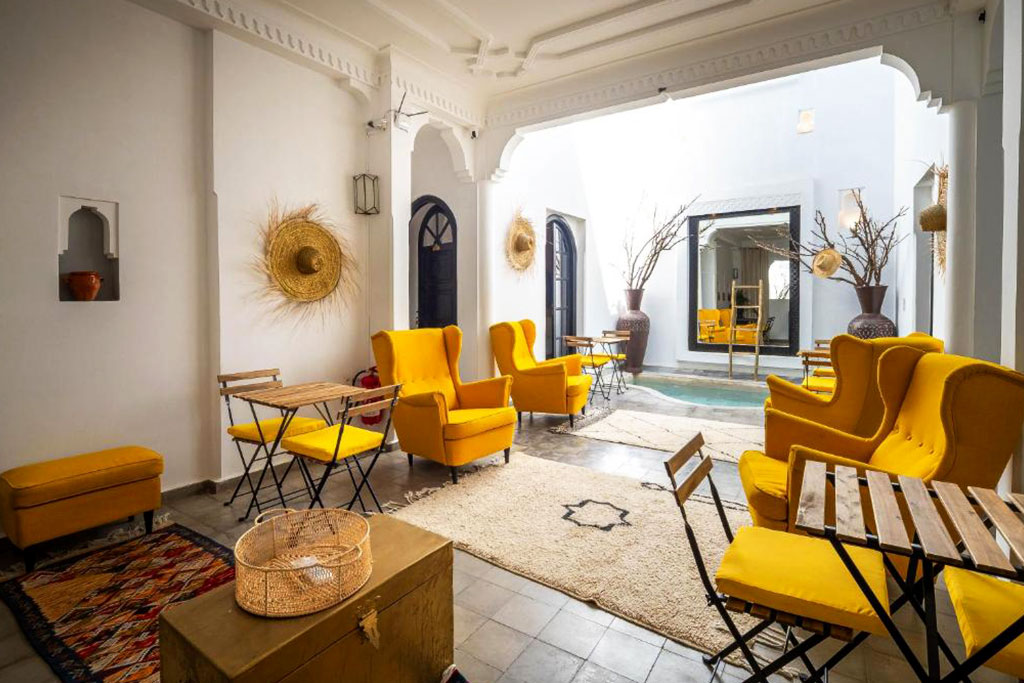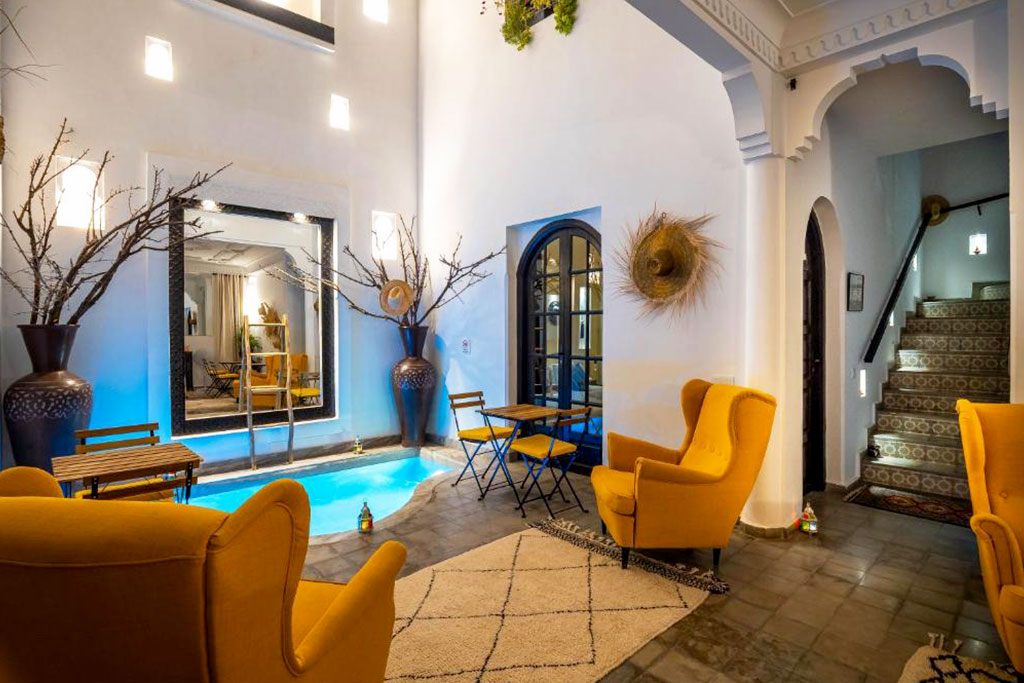 Bienvenue au Riad Côme & Va ! Situé dans le quartier historique de la Kasbah, à quelques pas du palais royal et au cœur de la médina de Marrakech, ce riad de charme vous accueille dans une atmosphère authentique, conviviale et raffinée, idéale pour un séjour en famille ou entre amis. Les chambres, décorées avec soin dans un style mêlant élégance orientale et confort moderne, invitent au repos après une journée d’exploration dans la ville rouge. Le patio central autour de la piscine intérieure est un lieu de détente parfait, tandis que le salon mariant tradition marocaine et décoration européenne invite à la convivialité et au repos. Grâce à sa situation privilégiée, à quelques minutes des principaux sites historiques et culturels, le Riad Côme & Va est l’adresse idéale pour vivre une expérience authentique et se laisser envoûter par la magie de Marrakech.