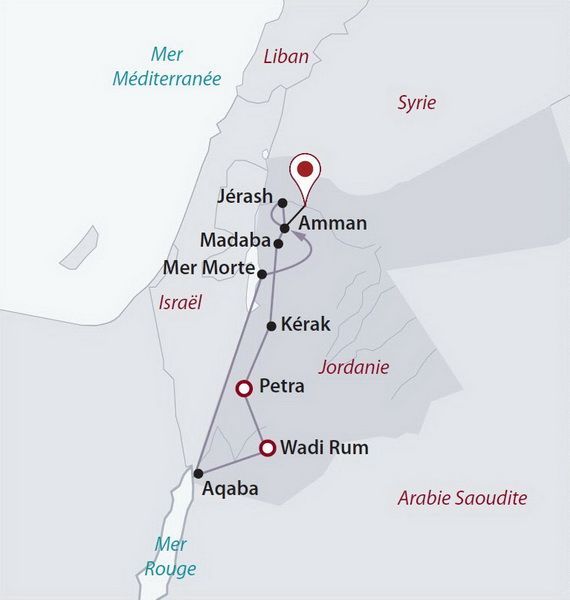 8 jours / 7 nuits Selon programme Un voyage en liberté et à prix doux, au volant de votre voiture de location, pour découvrir à votre rythme les sites-phares de la Jordanie, de la capitale Amman aux rives de la Mer Morte, en passant par l’incontournable Pétra et la station balnéaire d’Aqaba. Le tout agrémenté d’une nuit en campement dans le désert du Wadi Rum.-
