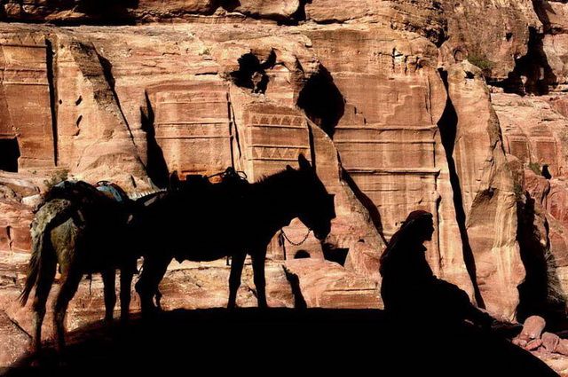 Une grande journée d’immersion à Pétra (UNESCO), qui débute par une promenade le long du Siq, impressionnant corridor minéral servant de voie d’accès à l’ancienne cité nabatéenne… Une ville unique au monde, entièrement sculptée dans le grès ocre et rose des canyons du Wadi Moussa. Au total, ce sont près de 800 monuments, principalement funéraires, qui parsèment ce site grandiose, concentrés dans le cirque central et les montagnes environnantes. Fondateurs de l’une des civilisations les plus illustres et les plus prospères du monde arabe, les Nabatéens, issus d’une tribu nomade venue d’Edom au 7e s. av. J.-C, bâtirent leur réussite sur leur parfaite connaissance du désert et des systèmes d’irrigation, ainsi que sur le commerce caravanier. Désertée à l’époque byzantine, leur incroyable capitale troglodyte fut redécouverte en 1812 seulement, par le voyageur suisse Johann Burckhardt. (P.déj+Déj+Dîn)