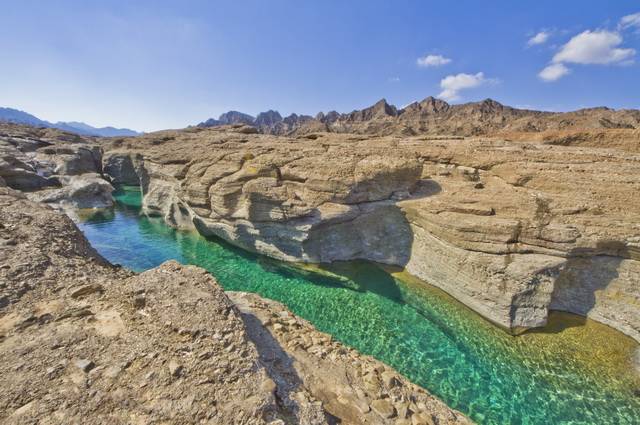 A Sinaw, arrêt possible au marché où les communautés bédouines de toute la région viennent acheter produits du quotidien, artisanat et bétail, un autre marché haut en couleurs se tenant le jeudi uniquement de 6h à 13h. Départ vers le Wadi Bani Khalid pour une promenade dans cette oasis de carte postale, dont les bassins émeraude au milieu des rochers forment d’agréables piscines naturelles. Continuation vers la charmante ville portuaire de Sur, installation à l’hôtel et temps libre pour flâner dans le quartier alangui d’Al Ayjah ou vous arrêter au chantier naval, où l’on fabriquait jadis les fameux boutres en bois. (P.déj)